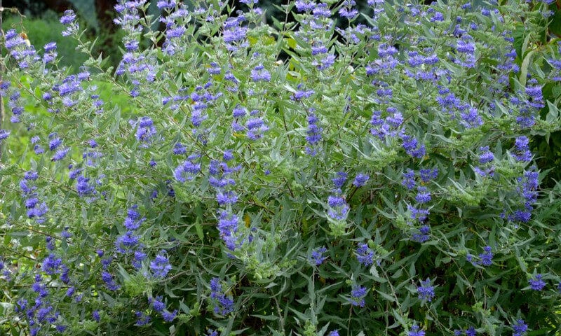 La Barbe-bleue fleurit à la fin de l’été, apportant une touche de couleur lorsque de nombreuses vivaces commencent à s’estomper. Ses petites fleurs bleu cobalt se regroupent en panicules et contrastent joliment avec le feuillage vert-grisâtre aromatique. Elle se marie parfaitement avec des graminées, des vivaces estivales ou des massifs ensoleillés.