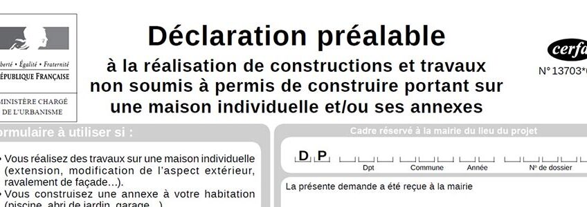 Certains travaux sont dispensés de permis mais peuvent nécessiter une déclaration préalable, notamment :