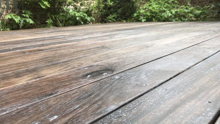 L’Ipé évolue naturellement vers une teinte grise argentée sous l’effet des UV. Cette évolution est purement esthétique et n’altère pas ses performances. Un entretien ponctuel peut être réalisé pour conserver la teinte d’origine, sans que cela soit indispensable à sa durabilité.